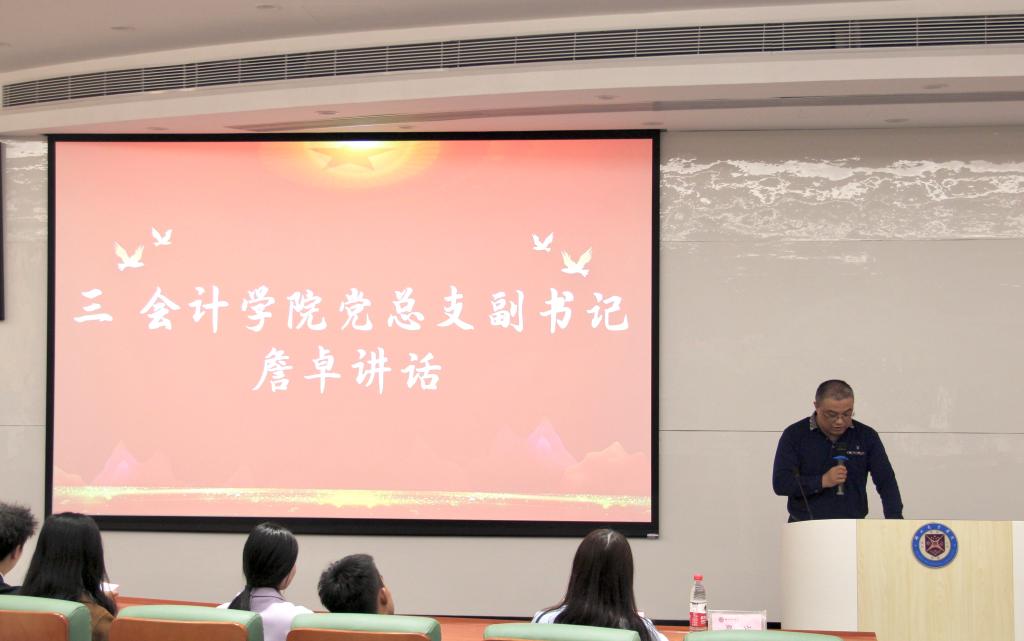 学院党总支副书记詹卓致辞。他提到学生干部在学院的文化建设中发挥着独特而不可替代的作用。还希望广大青年学生干部保持初心、有力有情,不断的学习,不断的进步,为学院的和谐发展贡献出更多的力量与智慧。