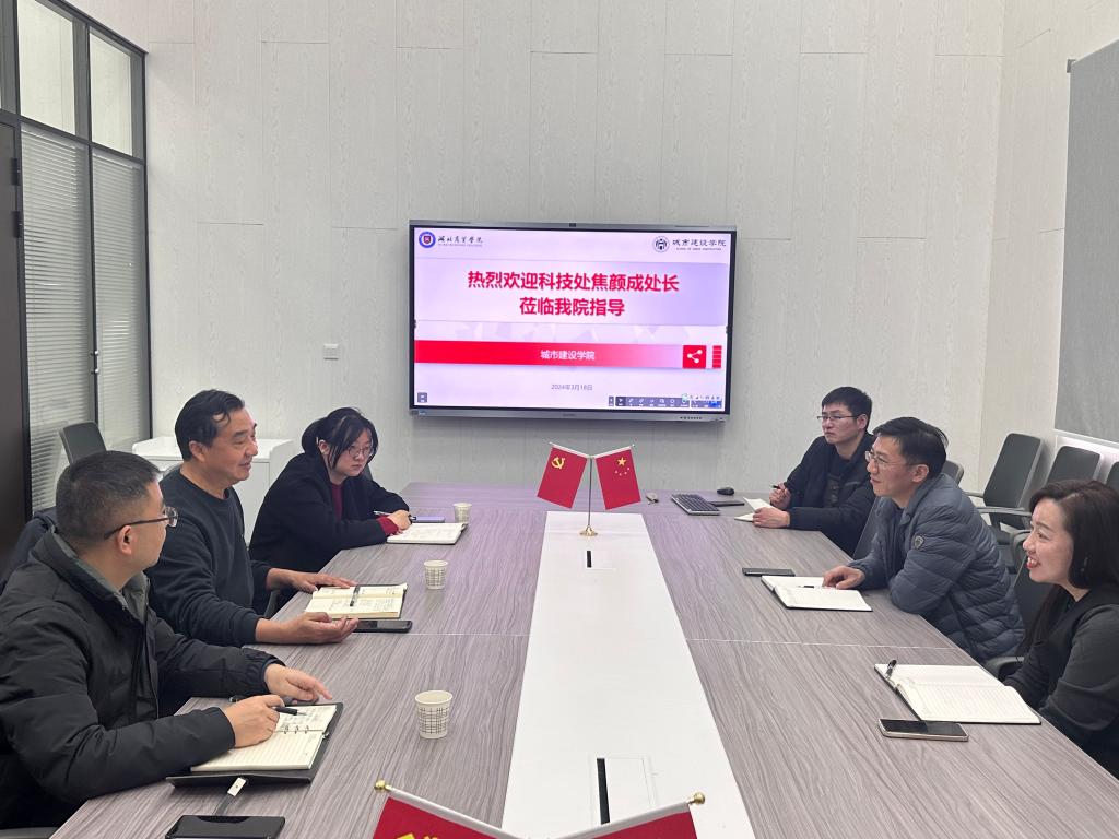 为更好地助力学院学科建设发展,推进科研工作,鼓励中高层次科研成果产出,3月18日上午,科技处顾问焦颜成、副处长曾天宝一行到城市建设学院开展科研调研工作,城建学院院长张悦、党总支书记刘红刚、副院长王磊参加会议。