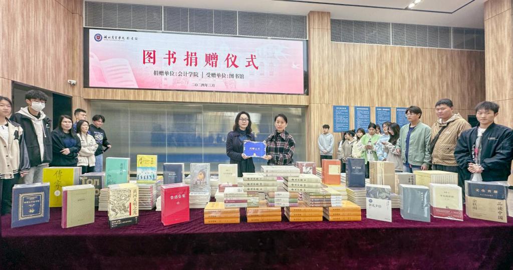 3月26日,会计学院向图书馆捐赠图书仪式在咸宁校区图书馆举行。会计学院院长吕碧君、会计学院党总支书记彭莉、图书馆馆长刘玉洁,以及会计学院师生代表等参加了本次活动,活动由图书馆馆员邓军主持。