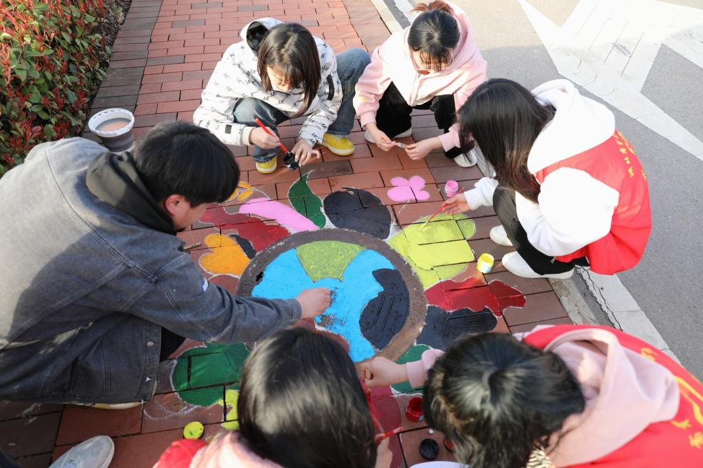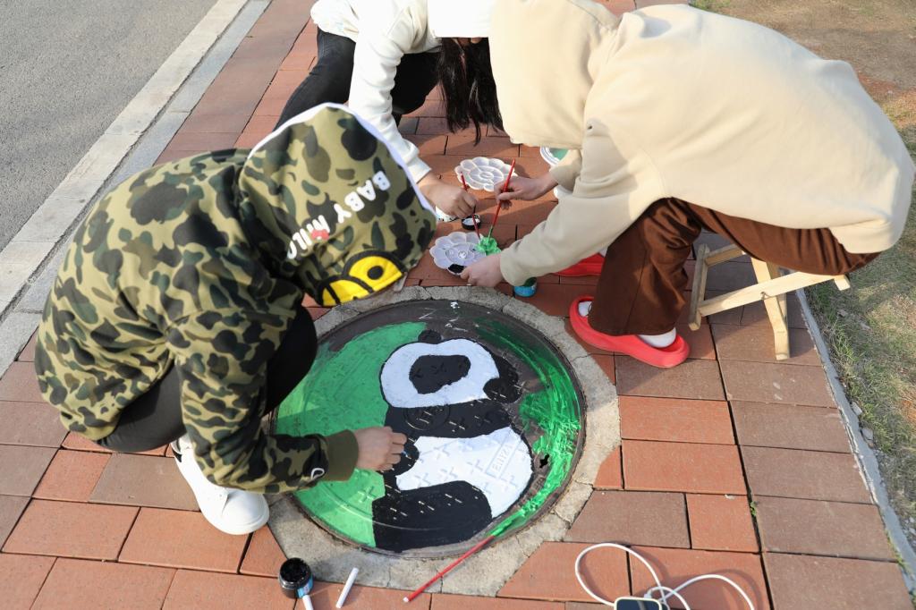 通过描图、绘画能力测试等环节筛选,130位来自各学院各专业的青年学生有幸成为“涂鸦化妆师”。3月以来,同学们在教育学院指导老师毛君安的带领下,或两三人一组、或三五人一组,以组为单位分批分次创作涂鸦作品,目前已完成30多个窨井盖涂鸦。