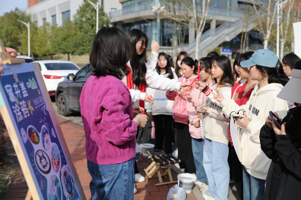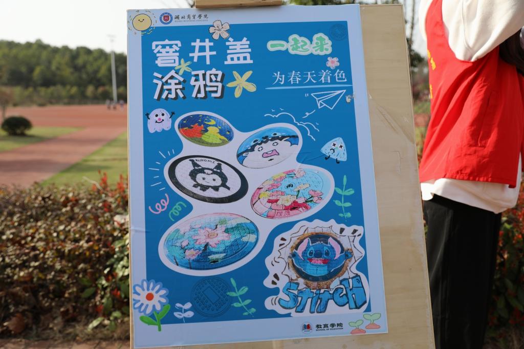 三月是百花开放、鸟语花香的最美季节,连日来,湖北商贸学院咸宁校区开展“为春天着色”窨井盖涂鸦活动,以教育学院学前教育专业为主体,各学院各专业学生踊跃报名参加的百余青年学子,用青春的笔触在数十个校园窨井盖上作画,描绘出一幅幅生动的涂鸦作品——国宝大熊猫、卡通人物、动物、山川风景、湖商校徽,为“醉美湖商校园”添上了别样的独特风景。