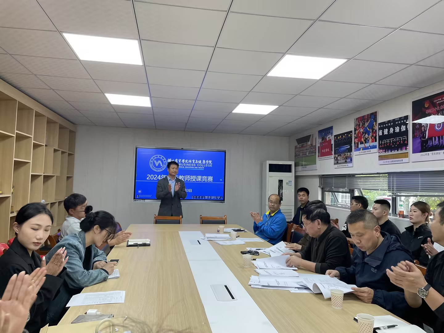 为了提高青年教师锻炼自我的能力,增强教学兴趣,加强青年教师教学基本功训练,4月2日——3日体育与健康学院分别在武汉、咸宁两校区开展2024年青年教师授课竞赛,教学质量管理处副处长丁克清、教学督导胡家浩教授、学院院长熊浩,副院长罗磊、王井强、余明炜担任评委,学院全体教师参与了此次活动,会议由熊浩主持。