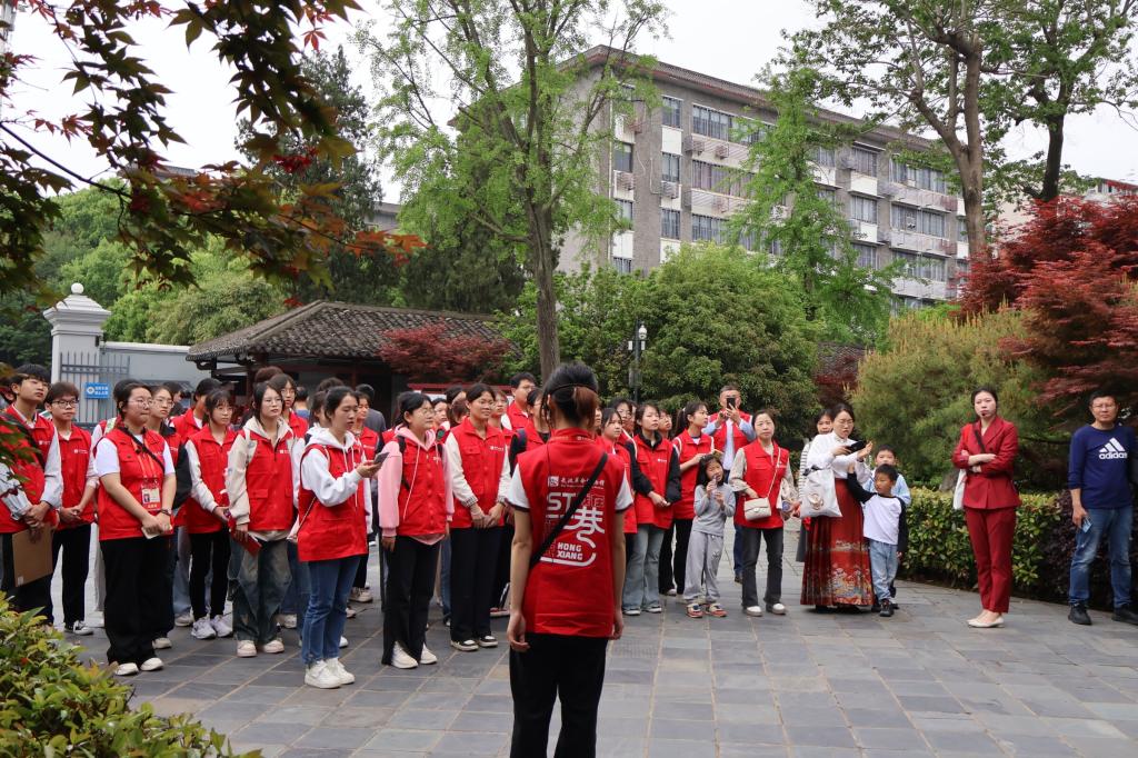 分享环节结束后,志愿者们进行了合影留念,留下了这难忘的一刻。随后,红巷苗苗和志愿者们进行了示范讲解。他们的讲解生动有趣、深入浅出,让在场的每个人都仿佛穿越到了那段波澜壮阔的革命岁月,深刻感受到了革命先烈的英勇事迹和崇高精神。
