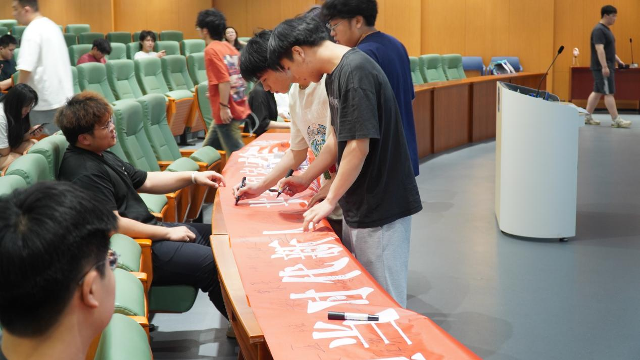 活动入场时,同学们在横幅上认真签名,写下对国家安全的守护承诺。一曲庄严的《义勇军进行曲》过后,主题教育正式开始。艺术与传媒学院辅导员向大家介绍了总体国家安全观的提出与全民国家安全教育日的由来,并详细讲解了总体国家安全观的“五个统筹”、“五大要素”和“十个坚持”,让同学们对总体国家安全观有了更深的了解,切实提升了同学们维护国家安全的意识。
