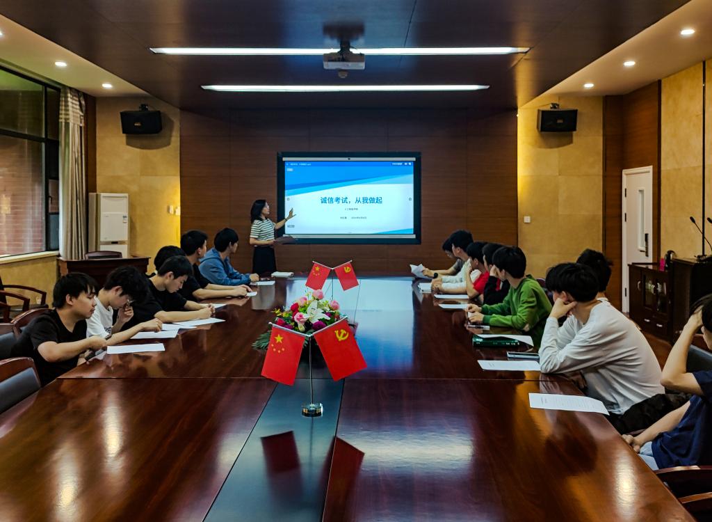 为进一步加强专升本考生普法教育和警示教育,增强同学们的法制意识、诚信意识和纪律意识,4月22日上午,人工智能学院在咸宁校区教学楼A106会议室召开了“诚信考试,从我做起”主题班会。学院党总支副书记刘红春、辅导员张志熙以及全体参与专升本考试的学生参加了会议,会议由刘红春主持。
