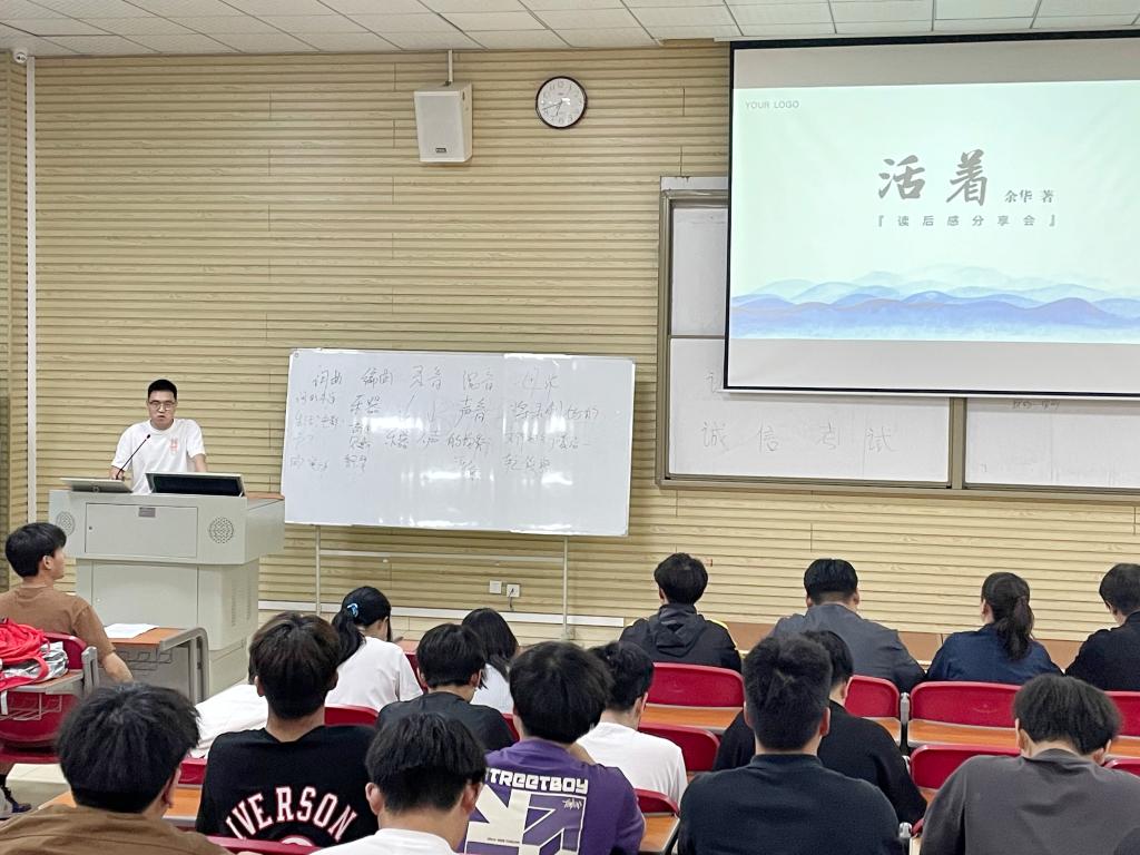 杨志文和段佳容两位同学,分别给大家分享了余华老师的《活着》,同样的书,不同的人去阅读时会有不同的解读和收获,两位同学结合自己的理解感受分别为大家分享了《活着》这本书给他们的启迪和思考,并鼓励同学们要以积极的状态去思考、面对自己的人生。