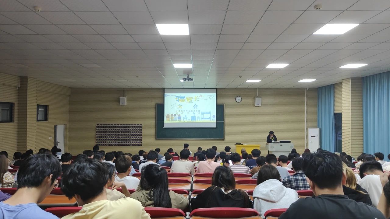 4月24日晚,计算机科学与技术学院在咸宁校区教学楼A-107召开全体寝室长大会,旨在加强学生宿舍管理,提升学生自治能力,营造更加和谐的校园生活环境。学院党总支副书记谢志洋、辅导员张强、主席团代表上官同柏同学以及全院寝室长参会。会议由王博同学主持。