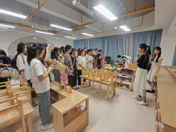 最后,学生们在保教干事潘成成老师的带领下,参观了园所的文化墙、大厅、走廊、班级教室和户外环境。