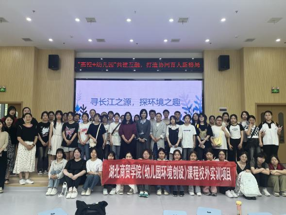 为了使学生充分而深刻地理解幼儿园环境教育的价值,4月25日下午,教育学院徐莹老师和蒋薇老师带领22学前本一班和本二班47名学生前往武昌区教育局教工幼儿园临江分园,开展《幼儿园环境创设》课程校外实训项目。