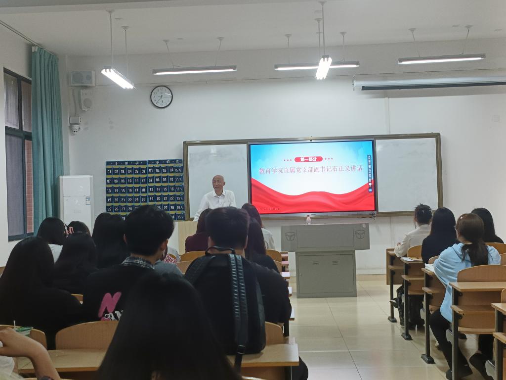 郑洁书记就“端正入党动机,争做合格党员”展开主题党课。她强调入党积极分子应以共产主义作为毕生追求和精神支柱,牢固树立全心全意为人民服务的意识。同时作为未来的教育工作者,还需兼备良好的师德师风,以实际行动向党组织靠拢。