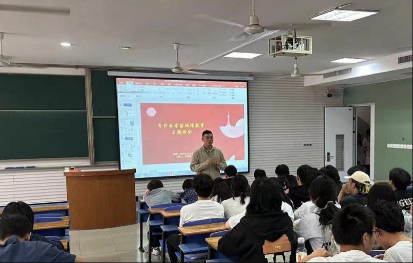 在班会上,辅导员罗老师结合各类考试违纪舞弊案例及其处理结果,教育引导考生坚决打消考试作弊念头,切勿怀揣侥幸心理,对学生进行警示教育,并鼓励学生制定科学合理的复习计划,积极备考,力争达成升学目标。