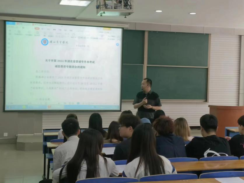 随着专升本考试的脚步日益临近,为进一步加强学风建设、严肃考风考纪,艺术与传媒学院于4月25日在武汉校区召开了“文明考风,诚信考试”主题教育班会。此次会议旨在加强学生诚信意识教育,促进学生诚信道德素养的提升。学院毕业班辅导员罗维、沈祎恺以及全体参加专升本考试的学生均出席了此次会议。
