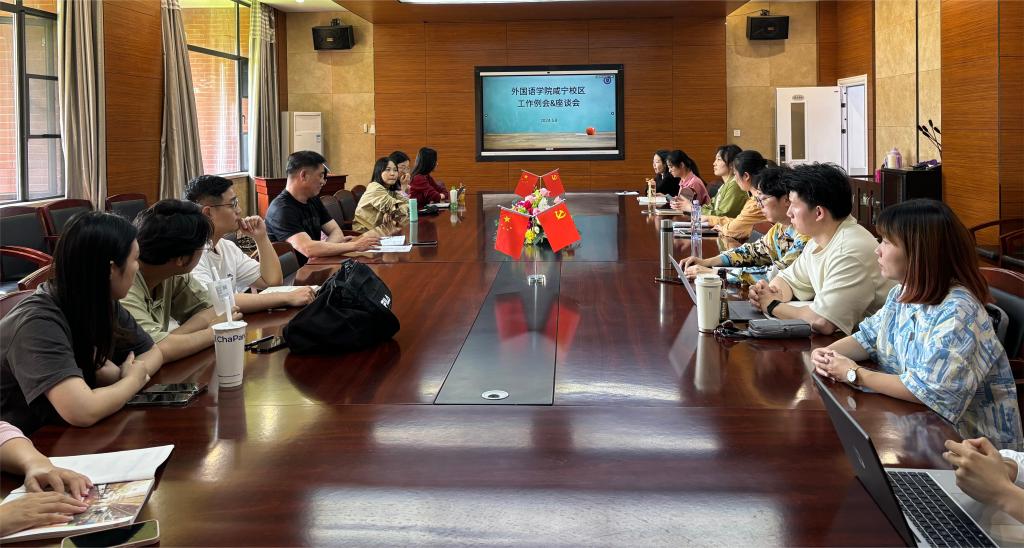 5月8日下午,外国语学院在咸宁校区A106会议室召开教师座谈会,该活动由副院长邵建芳主持,咸宁校区全体教师积极参会。本次座谈会围绕如何让学生在外语课堂上有所学为主题开展,多位优秀青年教师分享了自己的教学经验。