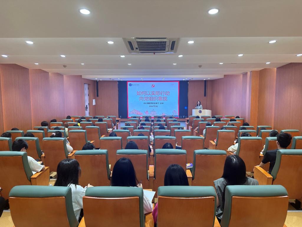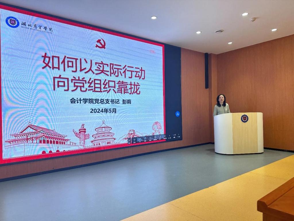 5月6日,会计学院党总支书记彭莉在图书馆报告厅为第九期入党积极分子培训班带来了一场生动而深刻的党课。本次党课的主题是“如何以实际行动向党组织靠拢”,旨在引导入党积极分子深入理解党的性质、宗旨和使命,激发他们积极投身党的事业,以实际行动践行党的理想和信念。