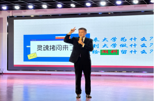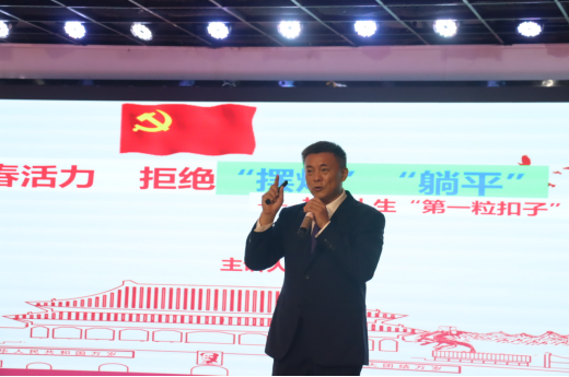 孔波借一首首富有激情的红色歌曲、一段段振奋的讲话和那惟妙惟肖的演绎,赢得了全场同学们的阵阵掌声。以“扣好人生第一粒扣子”为主线,与同学们一同探讨如何展现青春活力,摆脱消极态度的方法。孔波积极与学生们互动,向大家发问“来大学为什么?到大学做什么?给湖科留什么?”,他指出:“生活不只有眼前的苟且,还有诗和远方,你的梦想将决定你的格局!”