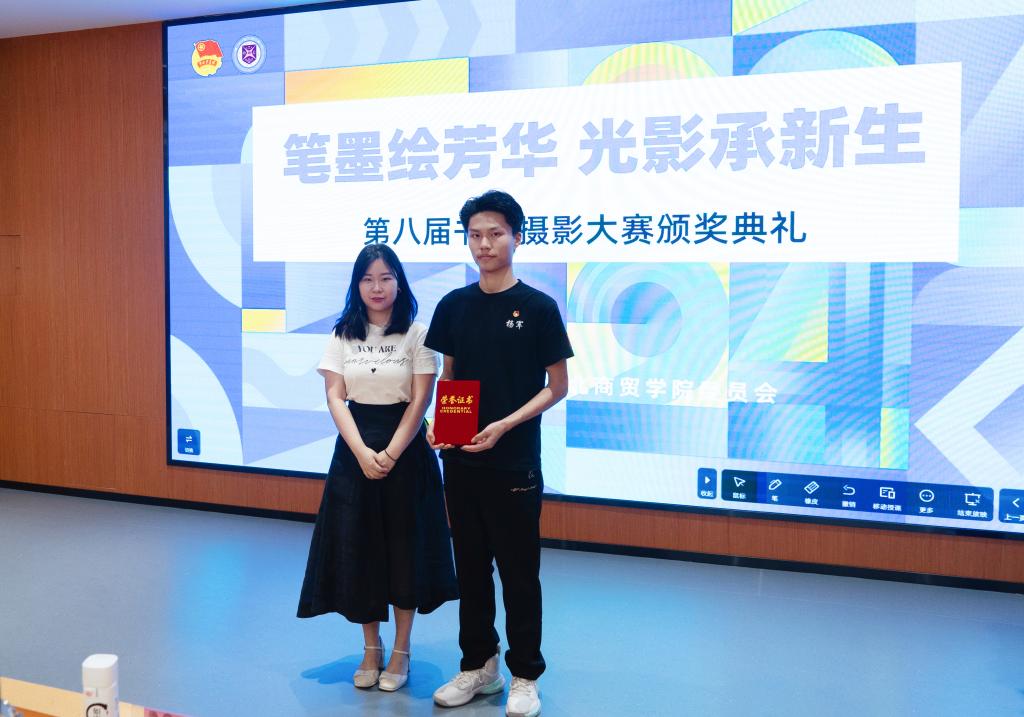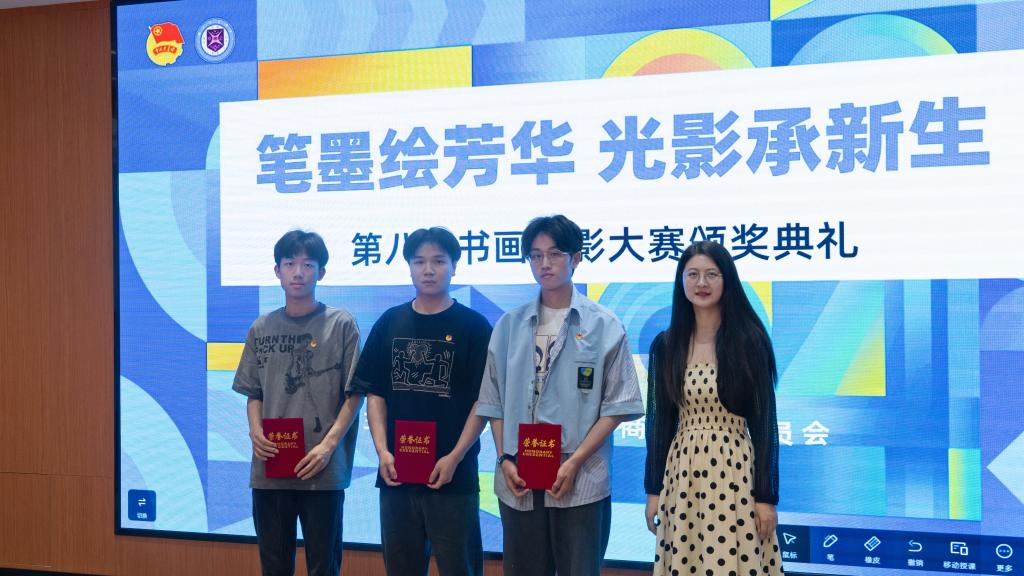 5月16日中午,湖北商贸学院“笔墨绘芳华 光影承新生”第八届书画摄影大赛颁奖仪式在图书馆报告厅举行。校团委书记陈雪芬、副书记成家睿,艺术与传媒学院团委书记宋杰、计算机科学与技术学院团委书记方澄、教育学院团委书记戴小雨以及校团委全体老师出席本次活动。