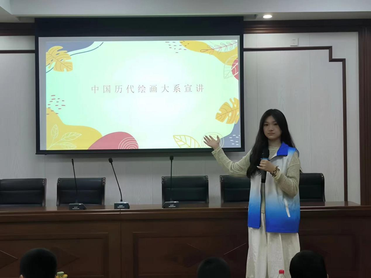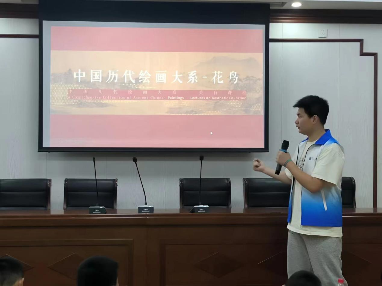 第一节课“探秘国画殿堂”,由七彩青年宣讲团队员李俊华主讲。课程从中国绘画的起源与发展历程讲起,带领小朋友穿越至千年前的水墨世界。本节课不仅讲解了国画的三大类别:人物、山水、花鸟,和每种类型的表现技巧;还深入到国画的技法层面,详细阐述了“勾、皴、染、点”等核心技艺。加强了小朋友们对中国绘画的理解,激发了他们对传统文化的热爱和传承之心。