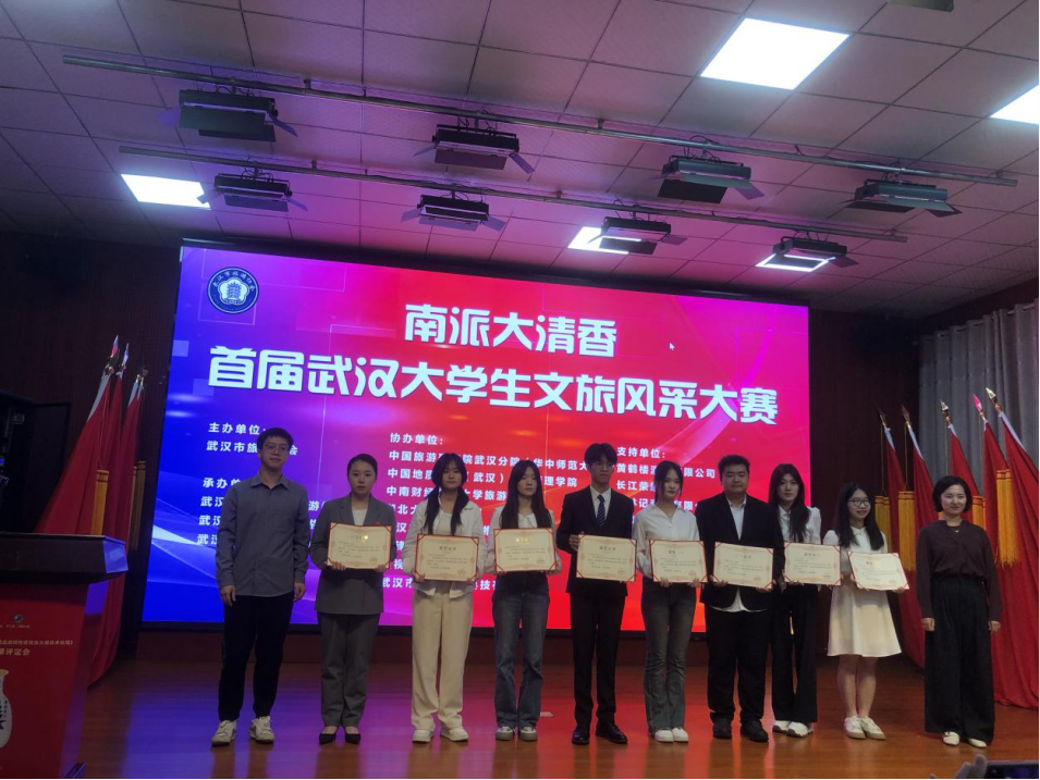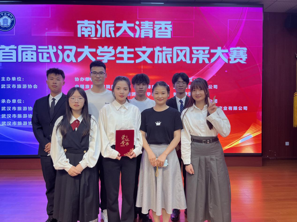 5月22日,由武汉市旅游协会主办的首届武汉大学生文旅风采大赛决赛在黄鹤楼酒业集团有限公司1号会议室成功举办。经过赛事层层筛选,经济与管理学院旅游教研室专业教师刘军和喻珍精心指导下的两支队伍成功晋级决赛。在决赛的重重比拼中,湖北商贸学院学子的“辛亥革命纪念馆微讲解”作品获得决赛二等奖,“漫游武汉,百里骑迹”旅游线路设计作品获得决赛三等奖。