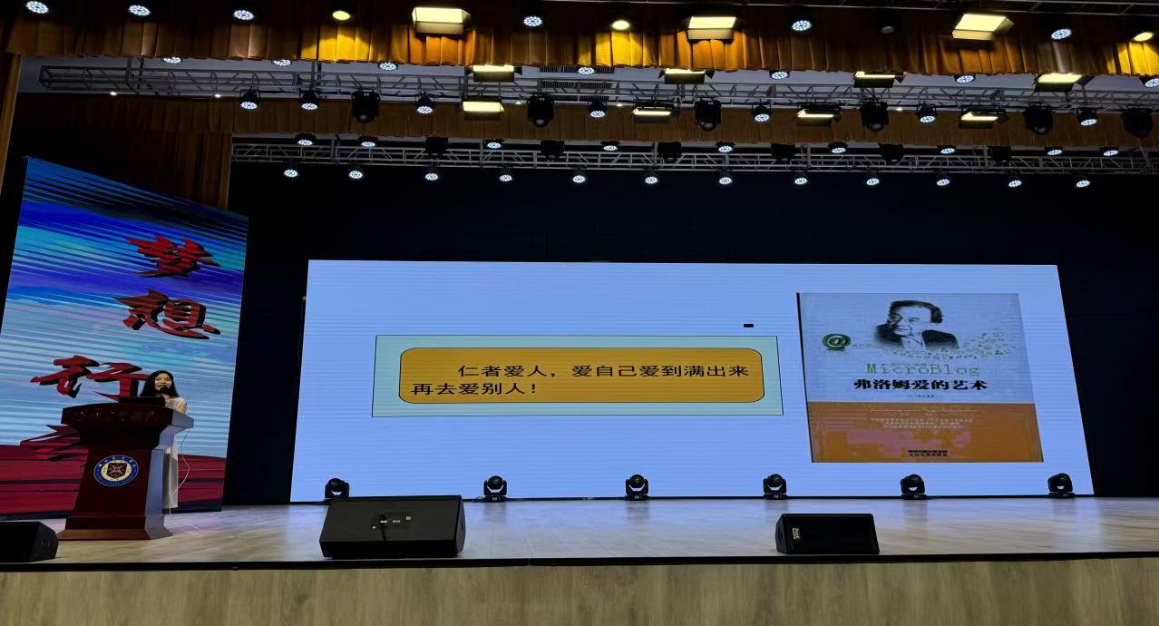 贾海玲老师以爱的解读,恋爱模式,爱情三角,爱上自己并收获真爱四个方面帮助学生们掌握恋爱节奏,强调爱上自己的重要性,学会建立健康的恋爱关系。并通过分享弗洛姆爱的艺术这本书来更好的鼓励学生们在恋爱中保持独立和自信,从而收获真正的爱情。