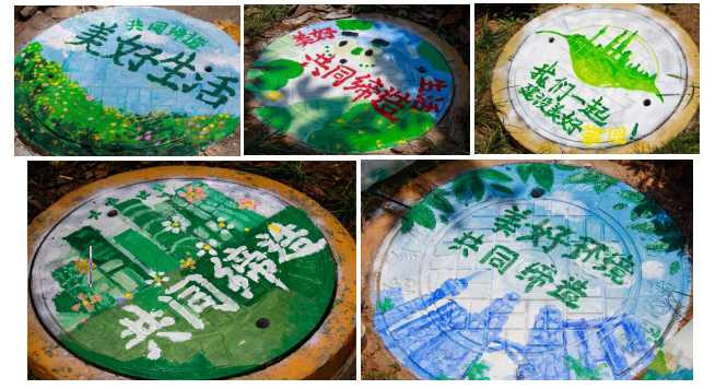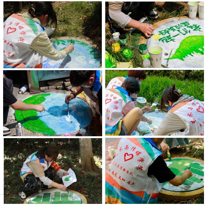 活动当日,阳光炙热,志愿者们积极投入绘画工作。他们以富有创意且贴近生活的方式为社区井盖进行涂鸦装饰。