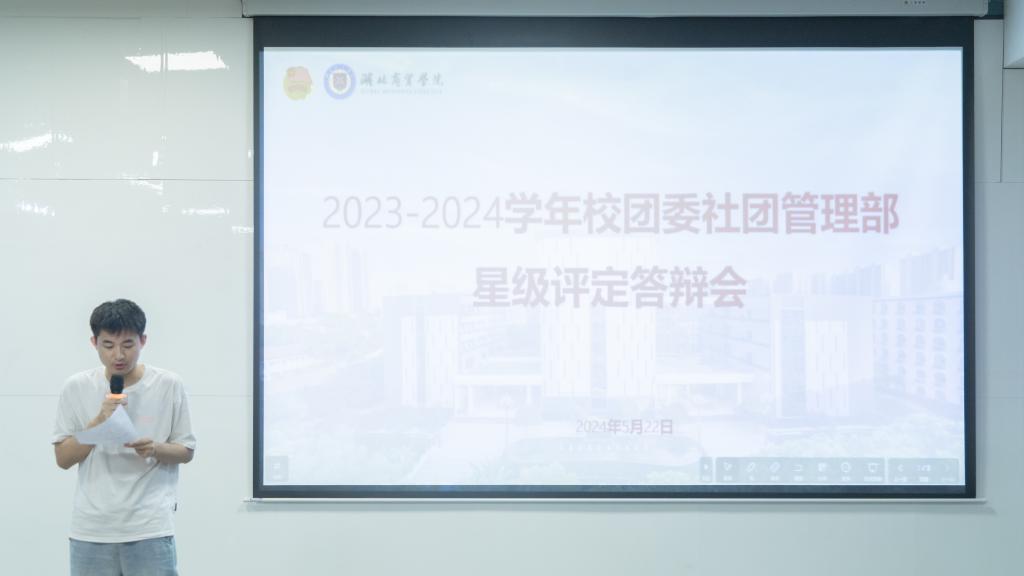 为进一步提高社团管理水平和服务水平,更好的服务同学文化生活,5月22日校团委在鸿博楼J2举办2023-2024学年学生社团星级评定答辩会。校团委副书记成家睿老师出席并担任评委。