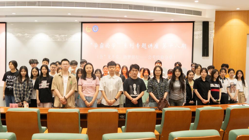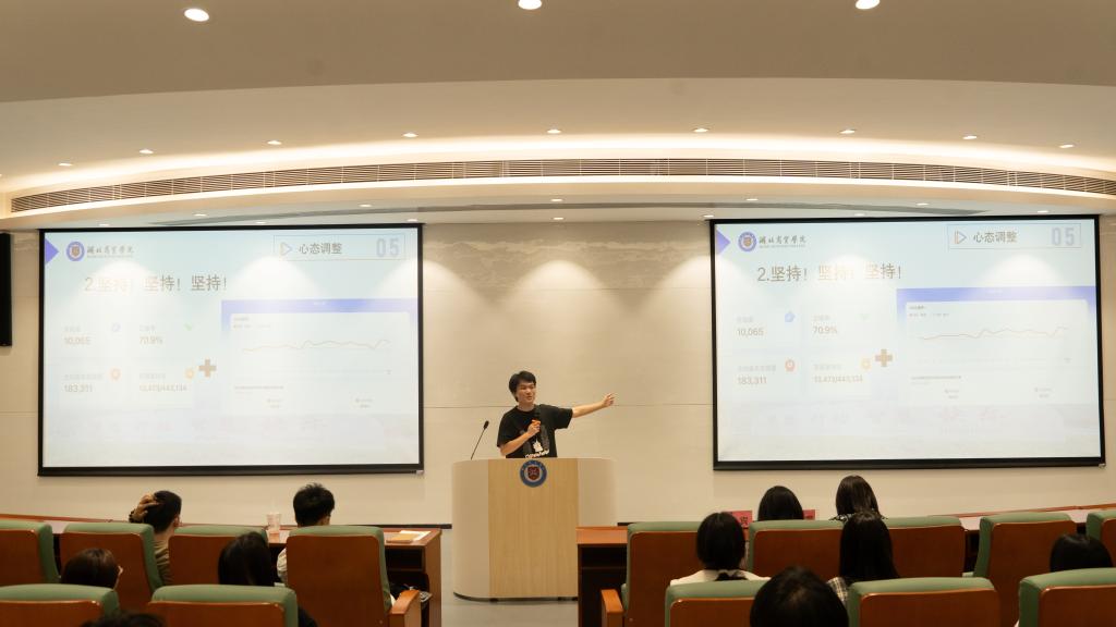 5月27日晚,“学霸论学”系列专题讲座第十八期在鸿博楼J1开讲。本期主题为“‘公’无不克,筑梦前行——公考经验分享”,由经济与管理学院学生苏振宇(考入武汉市武昌区税务局)、城市建设学院学生贾建祥(考入潜江市市场监督管理局)主讲。经济与管理学院团委书记刘淞、校团委老师周可梓参加活动。