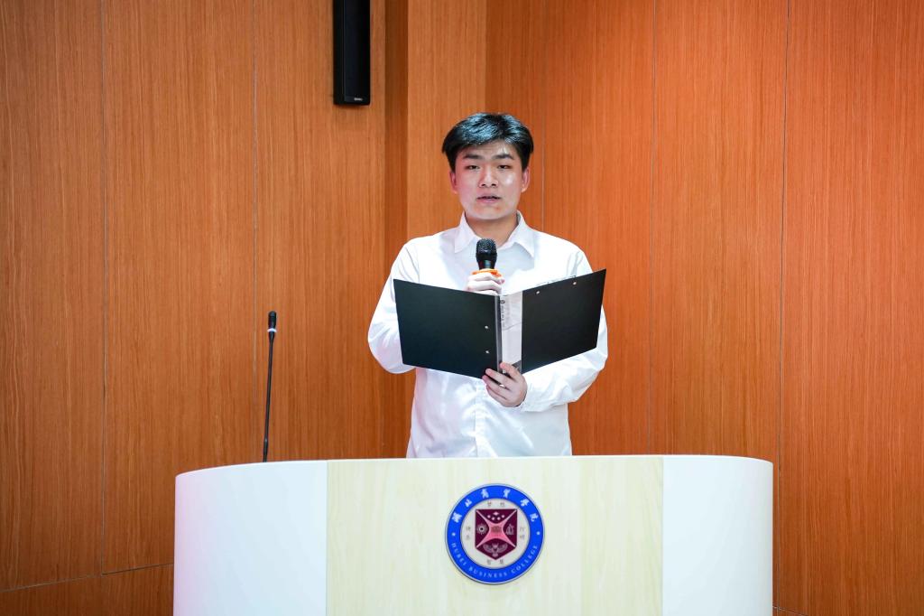 大会第七项,学院团委青年志愿者工作部部门负责人闫付源进行发言。他从雷锋精神切入,概括总结了学院开展的雷锋月系列活动,向大家充分展示了优秀的工作成果,并号召同学们今后一起续写雷锋精神新篇章。