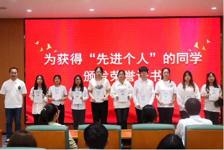 大会第五项,由罗维老师为获得雷锋月实践活动“先进个人”的同学颁发荣誉证书。