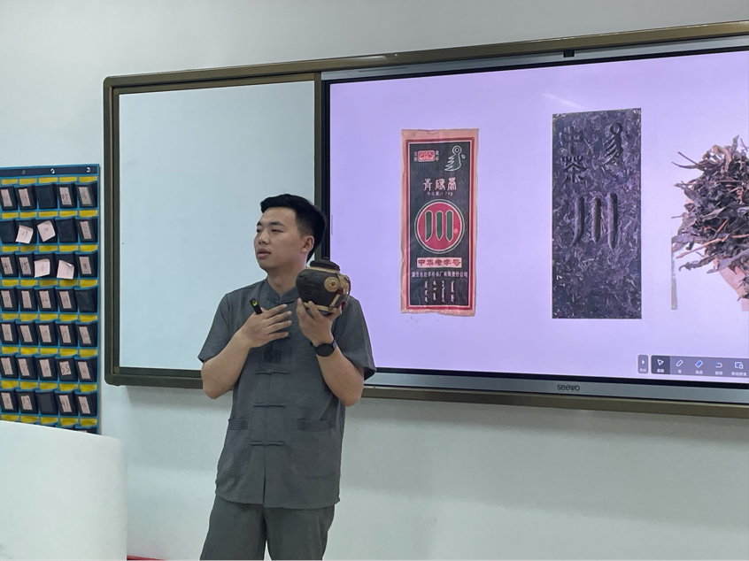 本次公开主题班会以咸宁青砖茶为主题,从茶之源、茶之韵、茶之道、茶之虑和茶之悟这五个方面进行讲解,带领同学们深入领略了这一茶韵的独特魅力。活动伊始,为让同学们直观感受茶文化的魅力,胡振华特意泡上青砖茶,大家围坐品茗,茶香弥漫。品茶如品人,初尝浓烈似年轻人初入社会的冲劲与青涩,再品醇厚甘甜如历经风雨后的成熟稳重。