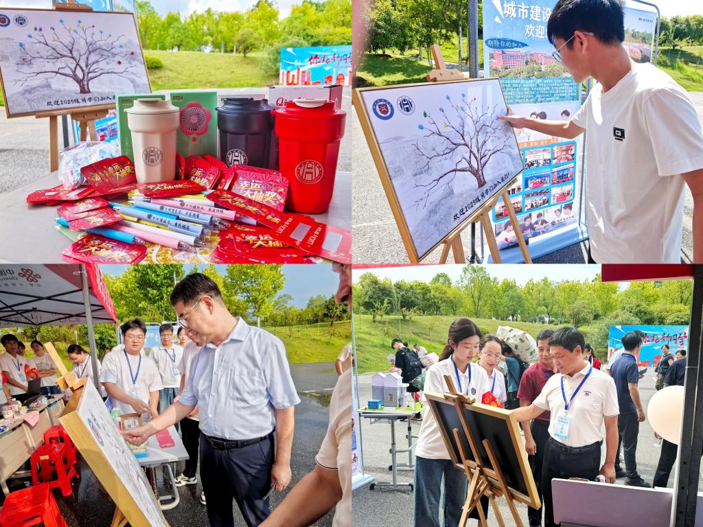 迎新现场,“专属定制签名树”与“刮刮乐送新生礼”两大活动联动,成为新生入学的“暖心开篇”。新生们依次在代表“成长”与“归属”的“树干”“枝叶”上按下专属手印,原本空白的“树木”迅速变得“枝繁叶茂”,成为记录新生加入学院大家庭的“纪念墙”。校长钱建国、校党委书记杨世雄参与其中,与新生并肩留下印记。