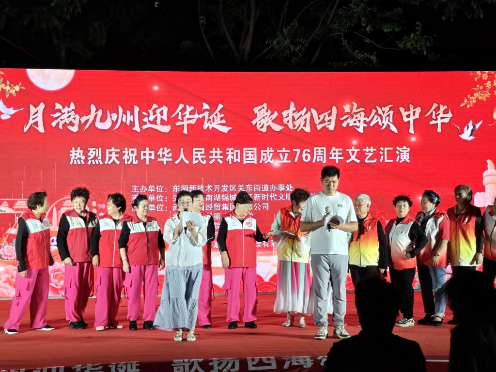 晚会接近尾声时,迎来了激动人心的社区大合唱环节。在领唱武薇、黄天香、梁慧雯、代玉彤四位志愿队队员的带领下,全场共同唱响《我和我的祖国》。悠扬的旋律回荡在社区上空,志愿队队员与社区所有参加人员一起,用歌声表达着对祖国的深深热爱和美好祝福。那整齐的歌声,唱出了团结一心、共庆佳节的喜悦,也唱出了对祖国繁荣昌盛的殷切期盼。