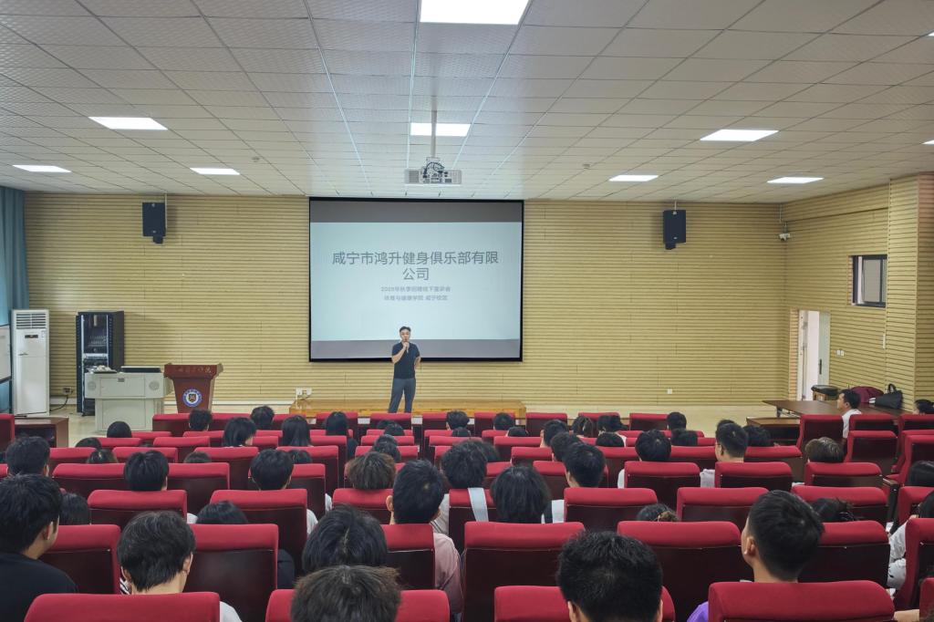 10月11日,体育与健康学院在咸宁校区教学楼XJA-108开展咸宁市鸿升健身俱乐部有限公司校园招聘宣讲会,特邀鸿升健身俱乐部钟经理主讲,学院党总支副书记吴琼枝、毕业班辅导员关耀钦参加活动,活动由关耀钦主持。