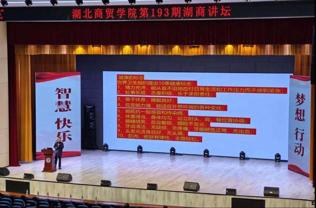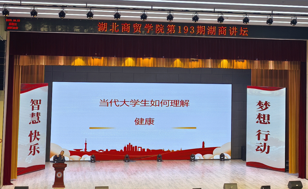 为全面提升学生健康素养,树立科学健康观,10月22日晚,第193期湖商讲坛在文体中心举行。本期讲坛特邀体育与健康学院副院长王井强教授,以“理想健康四要素”为主题展开专题讲座。讲座由咸宁校区学工办主任刘红刚主持。