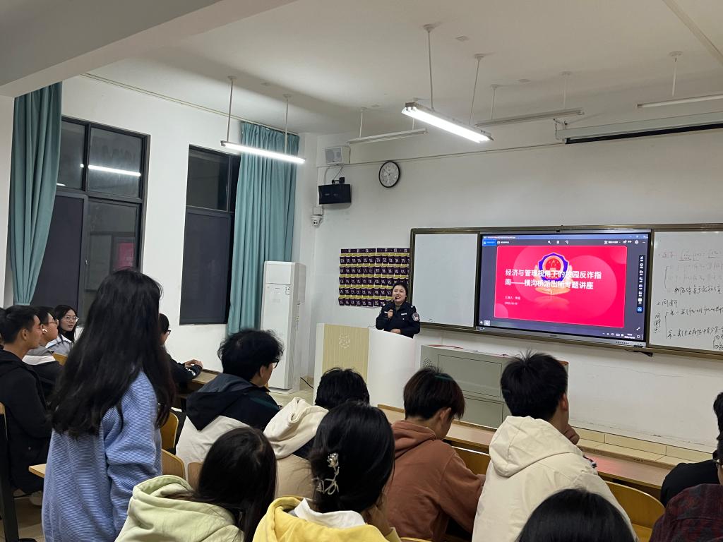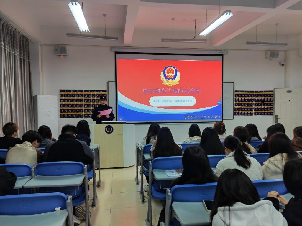 为切实筑牢校园反诈安全防线,有效预防和减少电信网络诈骗案件在学生群体中发生,提高同学们的自我防范意识和识骗防骗能力,10月26日晚,我校咸宁校区学工办联合保卫处精心组织,邀请辖区派出所民警走进班级,开展了一场“反诈宣讲进班会” 主题活动,为同学们带来了一堂生动实用的反诈安全课。