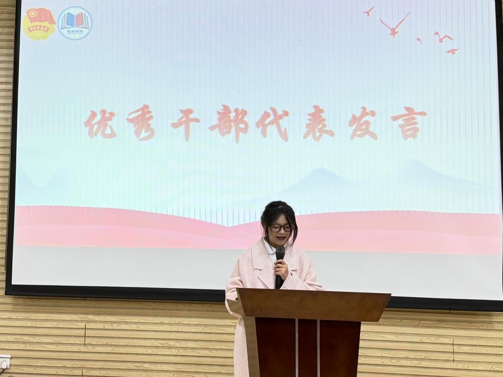 代表发言环节亮点纷呈。武汉校区优秀干部代表王志武回顾两年成长历程,分享“永葆全局思维、坚守服务初心、保持创新锐气”的三点坚守;新生干事代表朱雨婷表达加入组织的荣幸与责任,承诺平衡学工、传承传统、保持创造力。咸宁校区优秀干部代表石生琼表示将优化工作流程、打造成长型团队;干事代表秦薪媛分享入职收获与感悟;校区还增设自由发言环节,前文艺部部长邓婷回顾成长经历,院管委干事宋鑫月分享查课、查寝等工作对维护学院秩序、保障同学权益的体会。