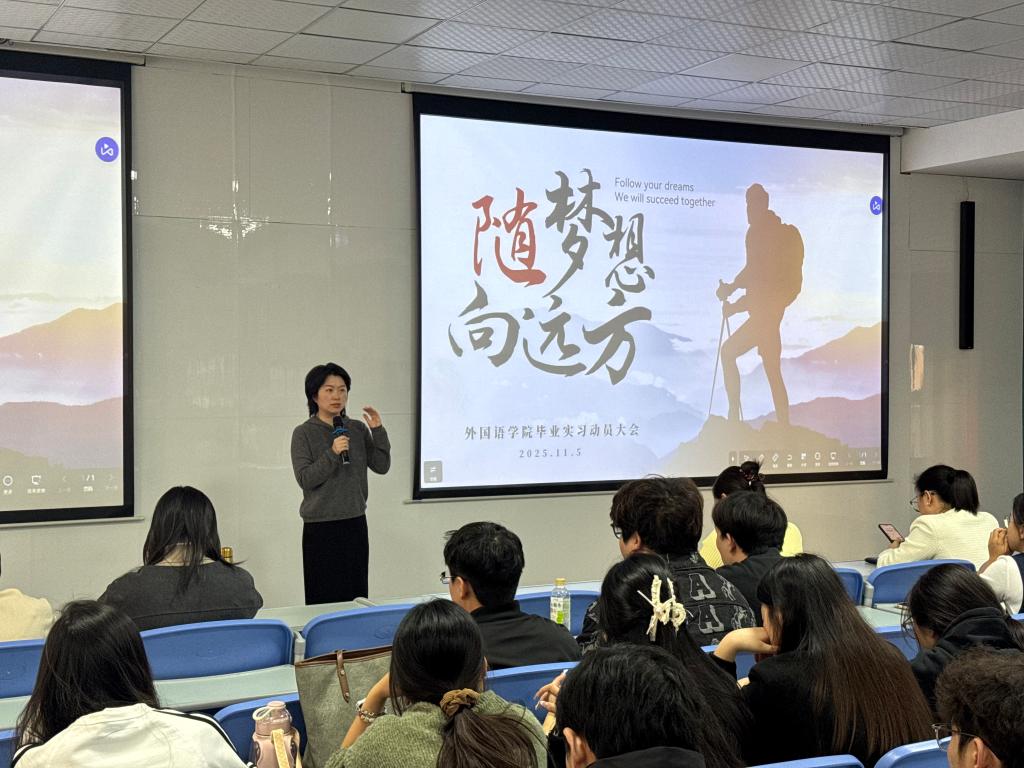 此次动员大会的召开,为外国语学院2026届毕业生的实习工作指明了方向、凝聚了共识,有效帮助同学们缓解了实习焦虑,增强了职场信心。学院将持续做好实习全过程跟踪指导,为学子们的实习之路保驾护航。