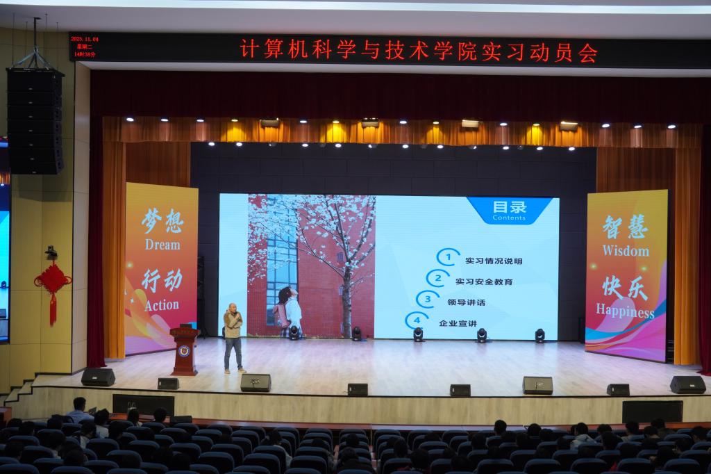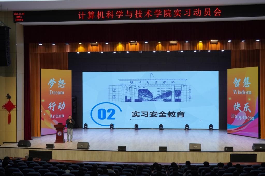 为切实做好2023级专科毕业生实习工作,帮助学生明确实习目标、规范实习行为、强化安全意识,11月4日下午,计算机科学与技术学院在咸宁校区文体中心召开实习动员会。计算机科学与技术学院副院长詹翠丽、党总支副书记罗维、计算机工程教研室副主任吕毅,咸宁校区全体毕业班辅导员及23级专科毕业生共同参会,会议围绕实习安排、安全保障等核心内容有序开展。