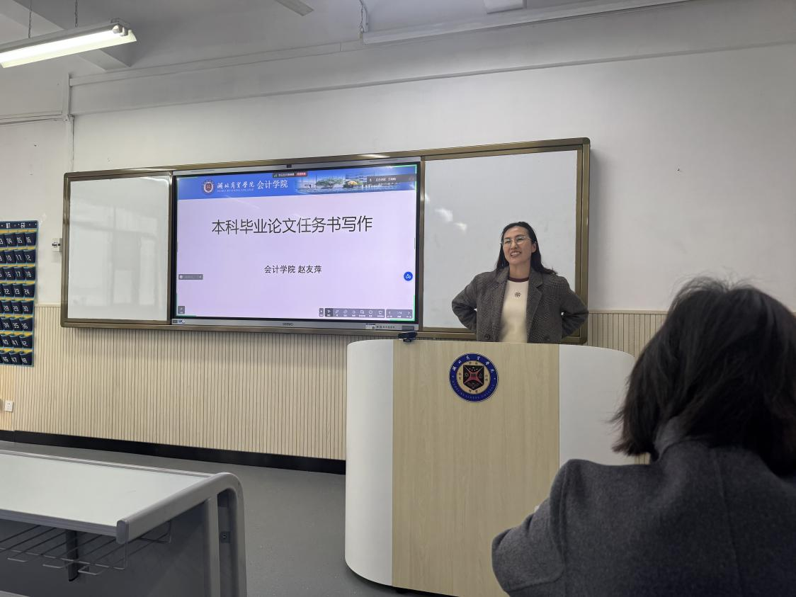 为提升本科毕业生论文写作质量,规范任务书撰写流程,近日,会计学院赵友萍老师主持开展了以“本科毕业论文任务书写作”为主题的教研室分享活动。本次分享聚焦任务书的写作要点,为青年教师开展毕业论文指导工作提供参考。