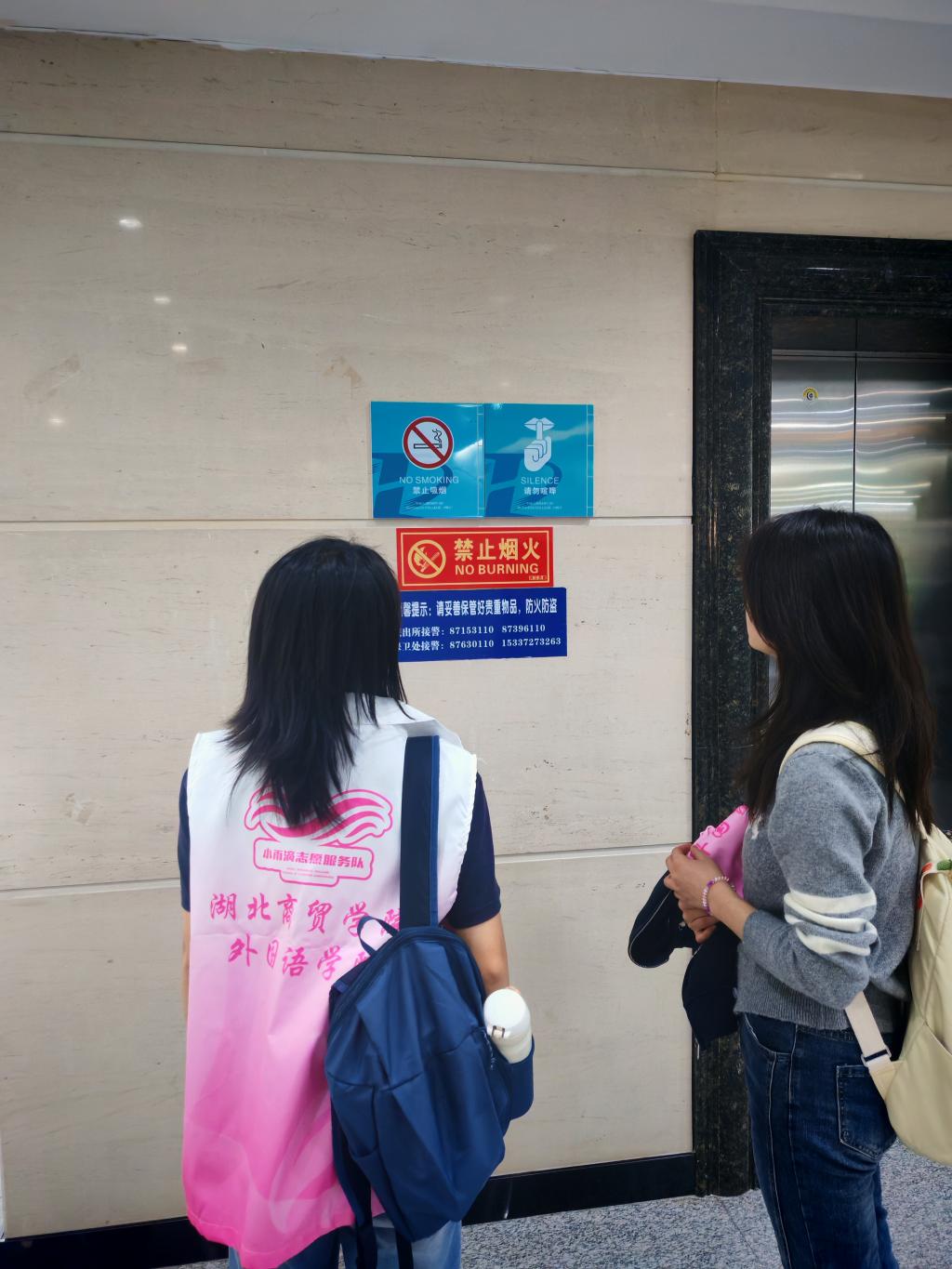 在消防通道区域,工作组发现部分标识存在语法疏漏和用词偏差;图书馆区域的“静音提示”标识,也因直译导致表达不符合英文标识常用语法结构。针对这类问题,师生通过专业研讨快速确定修正方向,例如将不规范的静音提示表述调整为国际通用的“Quiet Please”,确保标识既能传递准确信息,又符合语言使用习惯。