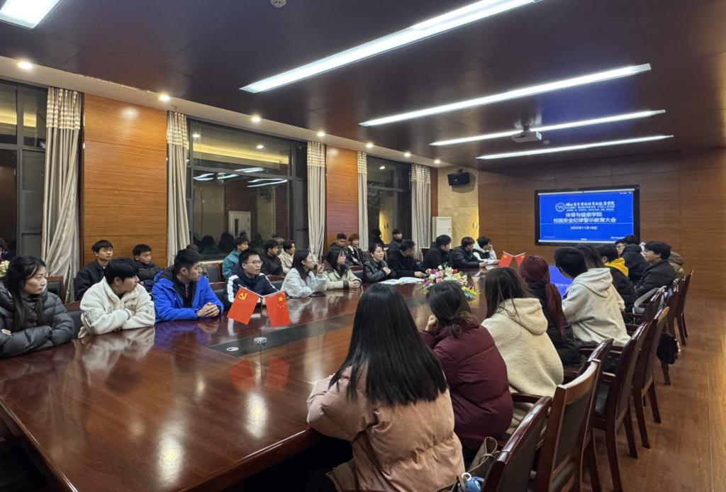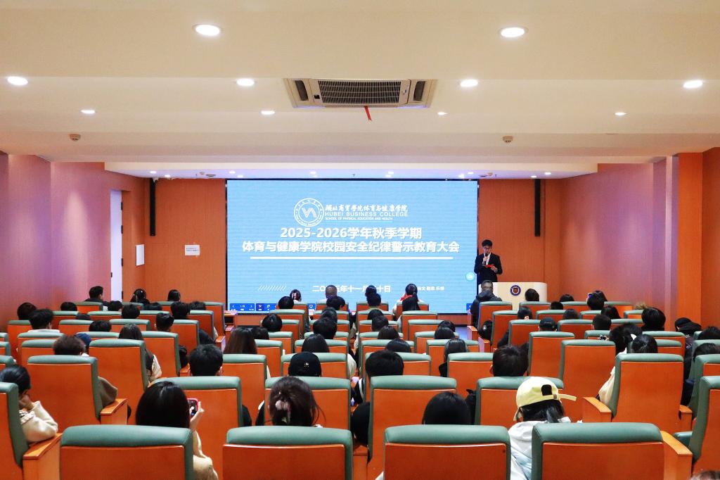 为切实强化学生安全防范意识,压实校园安全管理责任,11月20日,体育与健康学院组织各年级集中召开2025-2026学年校园安全纪律教育警示大会,学院党总支书记刘冰清、党总支副书记吴琼枝、副院长王井强、副院长余明炜出席会议,全体辅导员、各年级学生干部、宿舍长、学生党员、团员、入党积极分子参加会议。