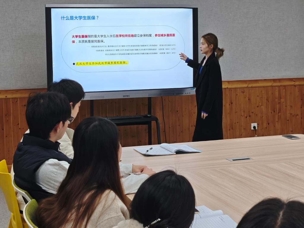 会上,闫明倩结合湖北省2025年最新医保政策,详细解读大学生医保相关政策及待遇标准,演示在校大学生医保参保、停保操作流程与注意事项,深入剖析门诊及住院费用报销、学平险理赔等实操重难点。现场围绕异地就医备案、重复参保处理等常见问题开展互动交流,精准破解工作困惑。
