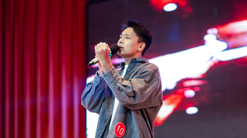 总决赛现场气氛热烈,灯光璀璨。来自全校各学院的参赛选手们各显神通,带来了风格迥异的精彩表演,流行、民谣、摇滚、古风等多种曲风轮番上阵,为现场观众呈现了一场视听盛宴。在“合唱竞技”环节,刘昊以一首《一路向北》深情开唱,清澈而富有穿透力的嗓音瞬间征服了在场的评委和观众。
