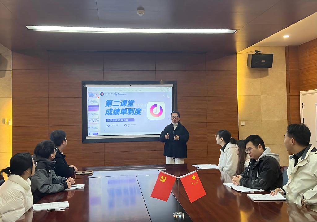 作为高校人才培养的重要组成部分,“第二课堂”是第一课堂的有效延伸和补充。培训伊始,方澄围绕“到梦空间”平台的操作使用展开系统讲解,从平台的核心功能、活动发布逻辑到学生报名流程进行了全流程拆解。她强调,“第二课堂成绩单”已纳入学生公共必修课学分,是学生毕业审核的重要依据,更是反映学生综合素质的关键证明,提醒同学们需高度重视。