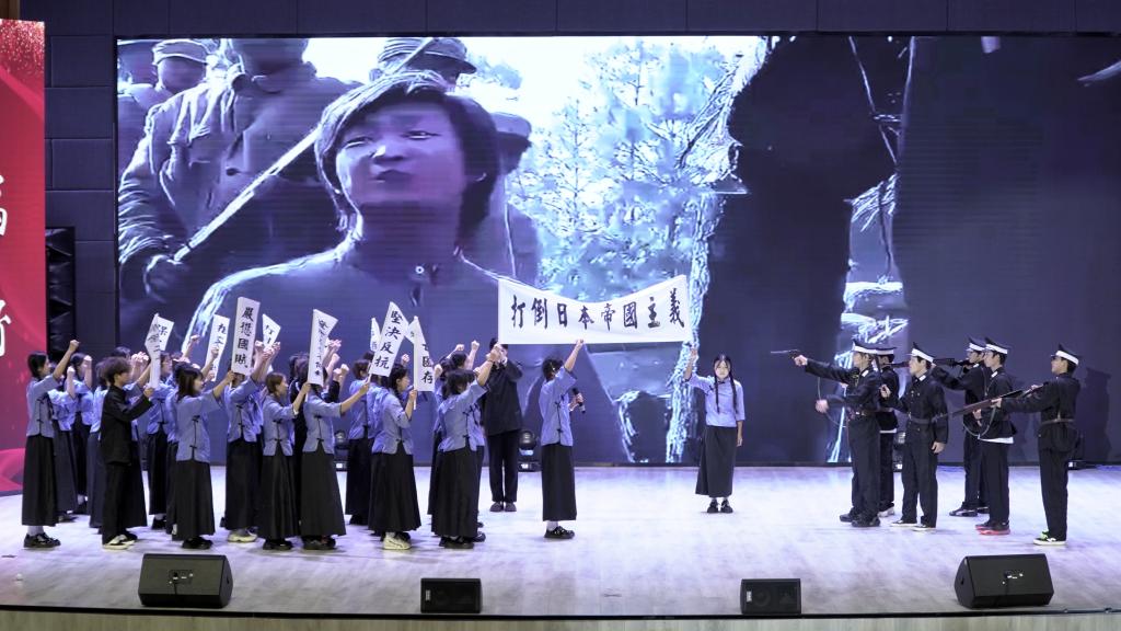舞台剧《救亡之路》中,演员们以饱满的激情和昂扬的姿态,生动重现了北平爱国学生的救亡壮举。