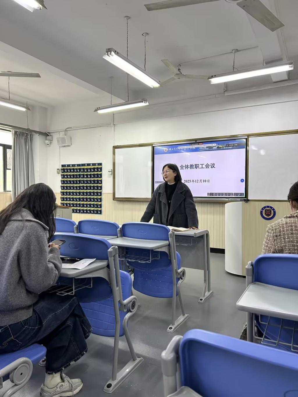 表彰环节后,会议进入下一阶段工作部署。郑晓燕结合学期末及近期工作重点,对多项任务进行了详细安排与明确要求。一是着力抓好毕业生实习工作,毕业实习是人才培养的关键环节,关乎学生实践能力培养与顺利就业。要求相关指导教师及辅导员密切跟进学生实习动态,加强过程管理与指导,切实保障实习质量与安全,助力学生完成从校园到社会的平稳过渡。二是严肃认真做好期末各项考务工作。临近期末,课程考核、试卷批阅、成绩录入等工作繁重而关键。郑晓燕要求全体教师严格遵守学校教学管理规定,确保期末考核的公平、公正与严谨,圆满完成本学期的教学收尾任务。三是精心组织全国大学英语四、六级考试监考工作。针对本周六即将举行的考试,要求全体参与监考的教职工高度重视,以高度的责任感和严谨的态度,熟悉考务流程,严守考试纪律,确保本次国家级考试平稳、有序、零差错进行。
