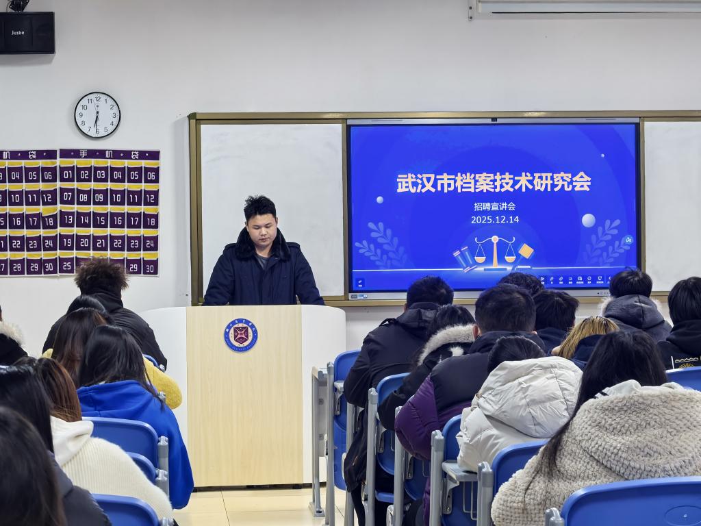 宣讲会特邀武汉市档案技术研究会走进校园。研究会招聘负责人冀先生详细介绍了单位的发展历程、业务领域、企业文化及人才发展战略,并重点发布了此次面向我校学子的招聘岗位:财务会计助理与审计实习生。负责人表示,这些岗位旨在为相关专业学生提供将理论知识应用于实践操作的宝贵机会,帮助其提升职业素养与综合能力。