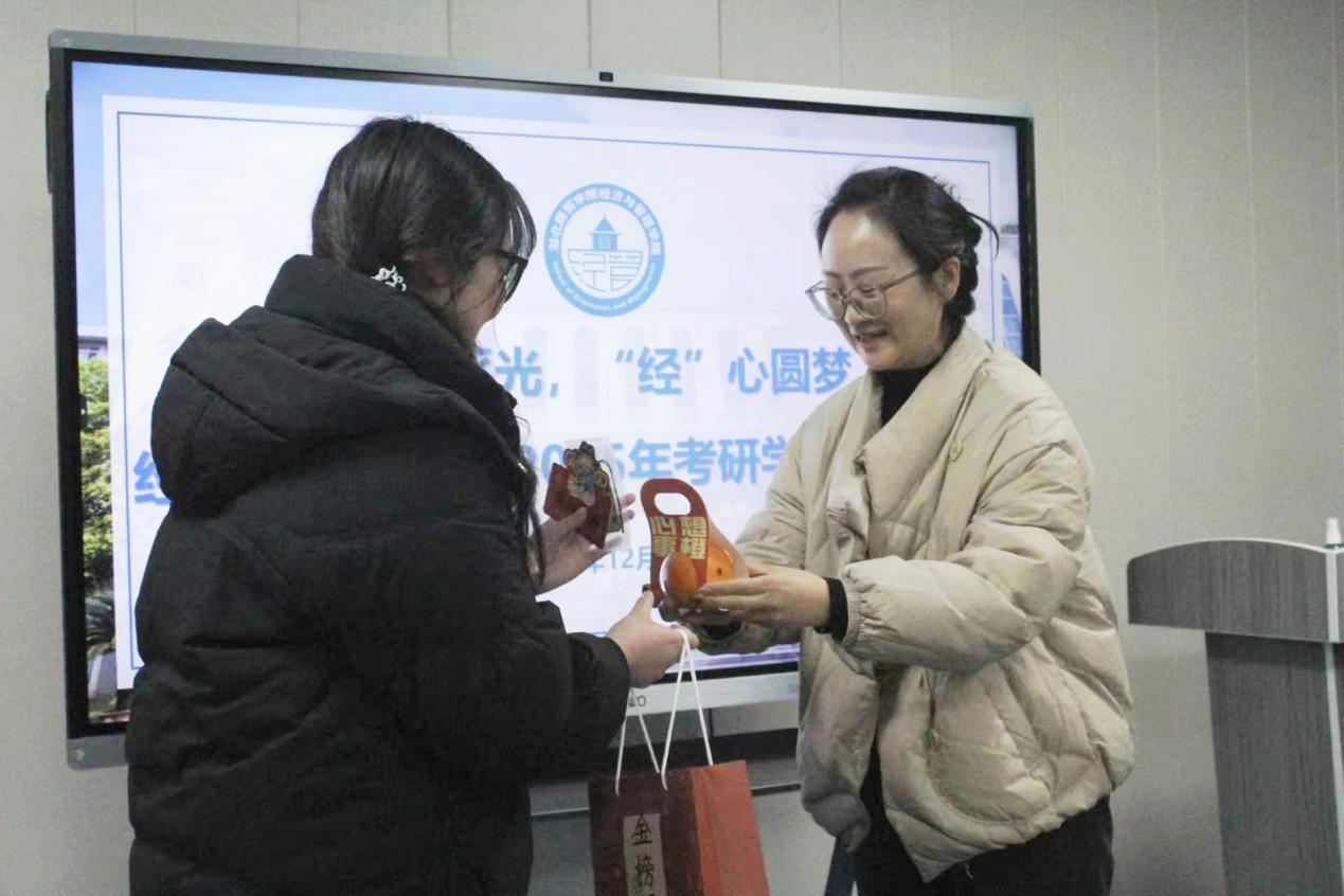 此次慰问活动不仅是一次简单的考前关怀,更是一场为经管考研学子注入信心的温暖仪式;体现了经济与管理学院“以生为本”的育人理念,在师生间建立了有力的情感联结,为经管学院的学风建设搭上了一块坚实的基石。祝愿经管考研学子们不负耕耘,以平日之积淀书写满意答卷,在这场逐梦之战中旗开得胜,顺利迈入理想学府,开启人生新篇!