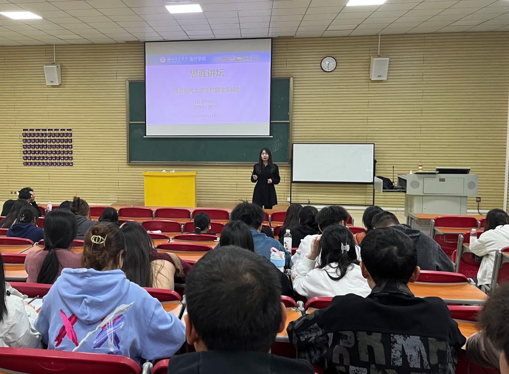3月14日,会计学院周沁老师为会计学院22级专1至专3班的同学们带来了一场题为“大学生校园生活规划”的精彩演讲。