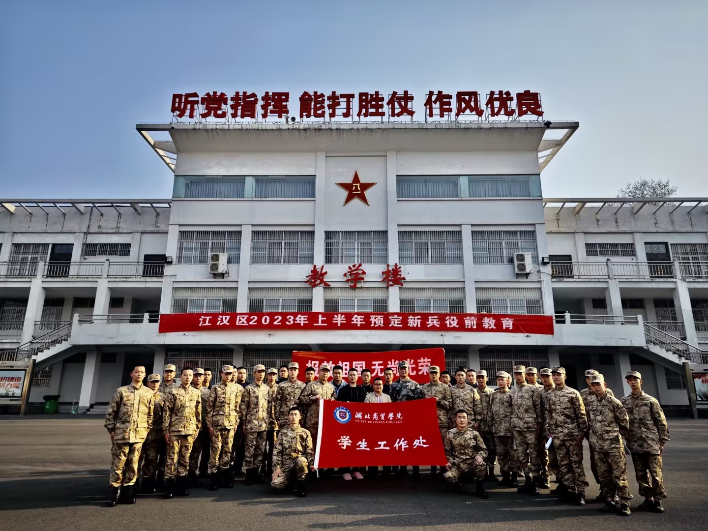 欢送仪式后,学生工作处领导和光荣入伍的大学生集体合影留念