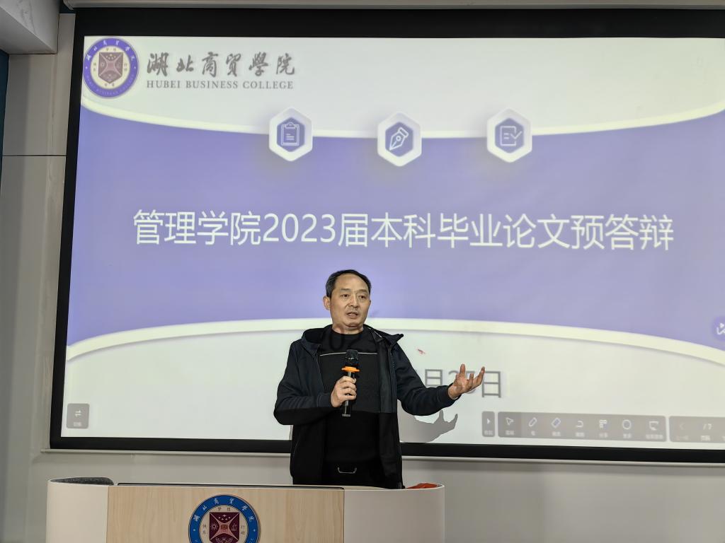 4月25日,管理学院在鸿博楼J-02举行2023届本科毕业论文预答辩,本次预答辩邀请了教务处常务副处长罗涛涛莅临指导。管理学院院长严良教授担任本次预答辩小组组长,副院长孟静副教授、胡文静教授为预答辩小组成员。预答辩由副院长徐刚主持。